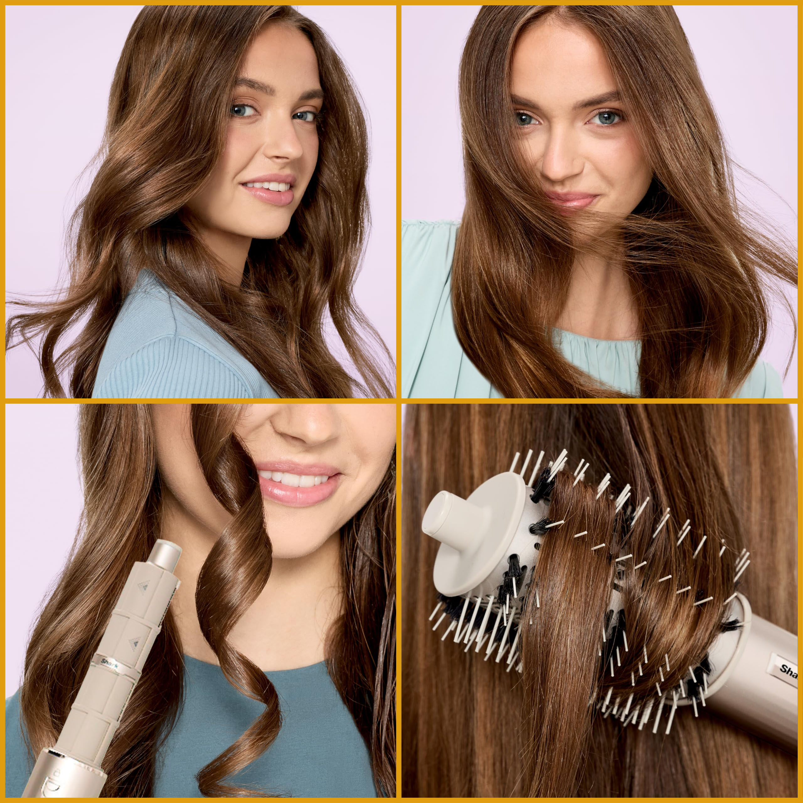 Roter hovedenheten og monter ønsket tilbehør: automatiske krøllejern for voluminøse krøller, oval børste for utglattning og volum, eller flat børste for perfekt glansende resultater.