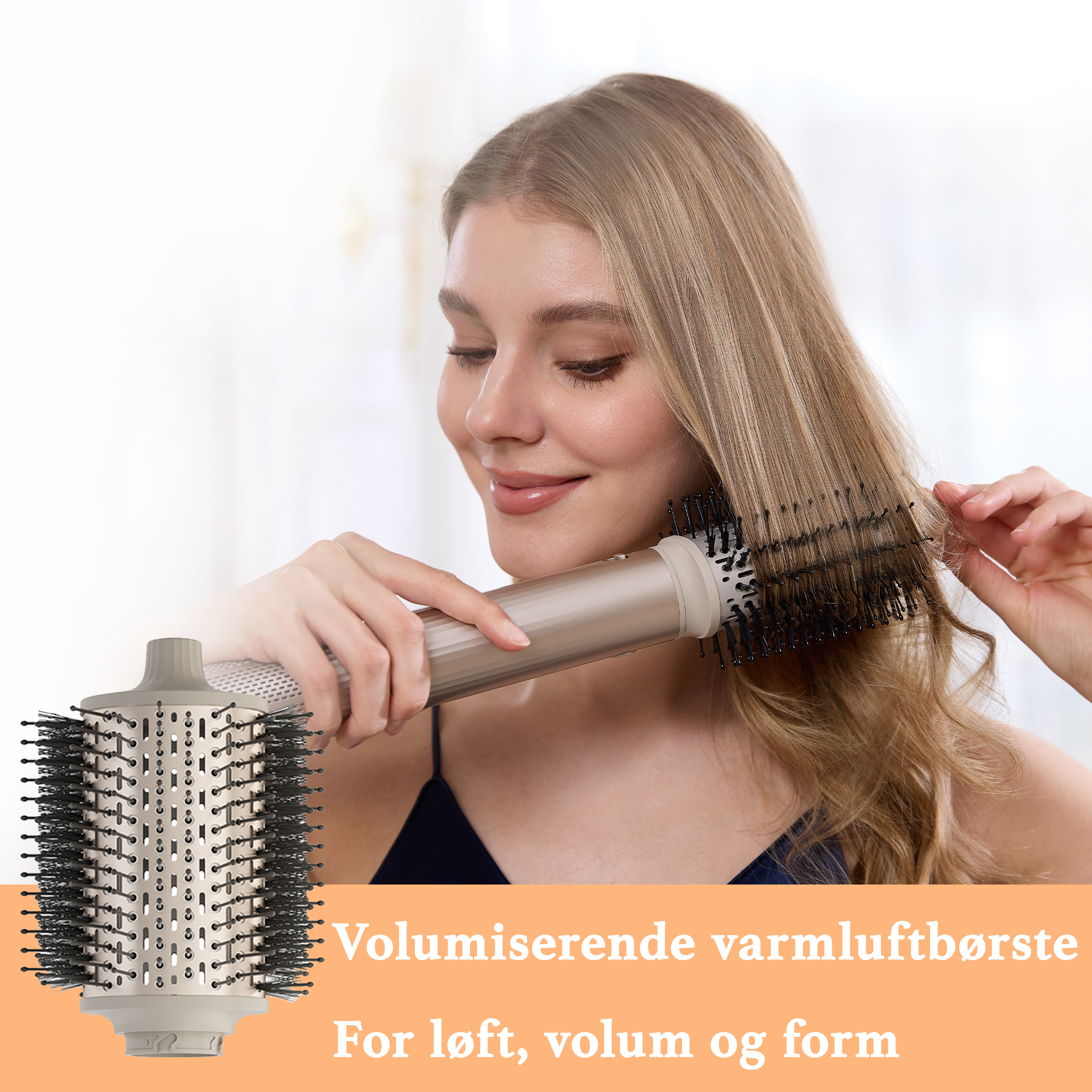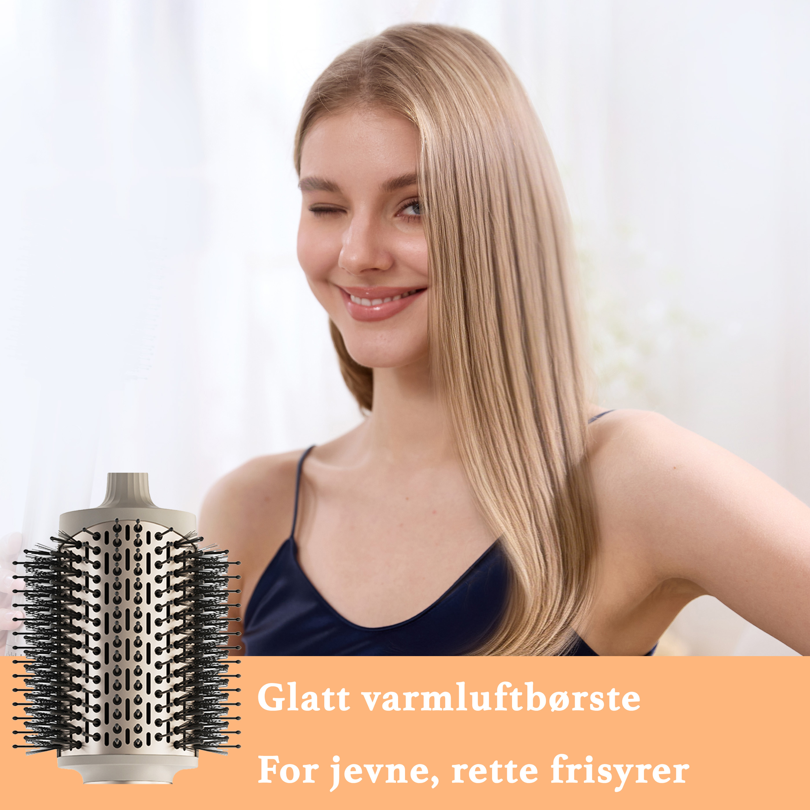 Bruk den automatiske krøllejernet eller volumbørstetilbehøret for å style etter dine ønsker. Velg høy hastighet og høy varme, krøll og fest håret på plass til det er helt tørt.